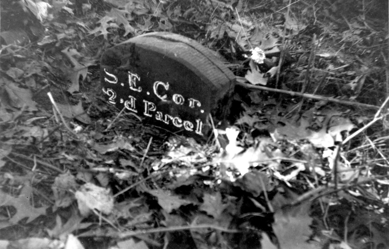 the corner of one of William McKown's parcels. The inscription reads