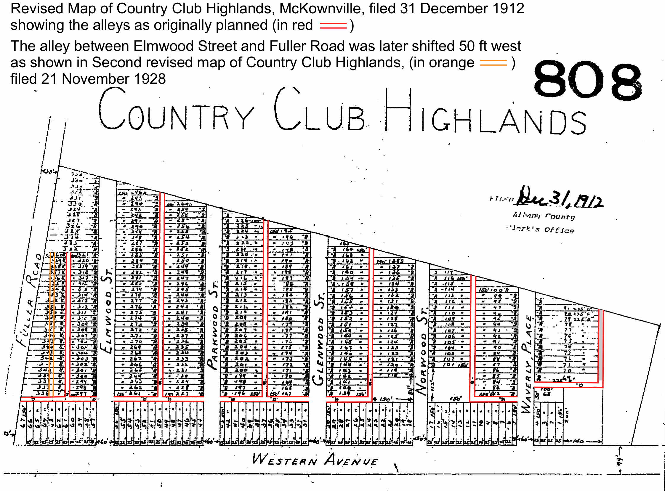 the lots and the alley west of Elmwood Street; the alley was shifted