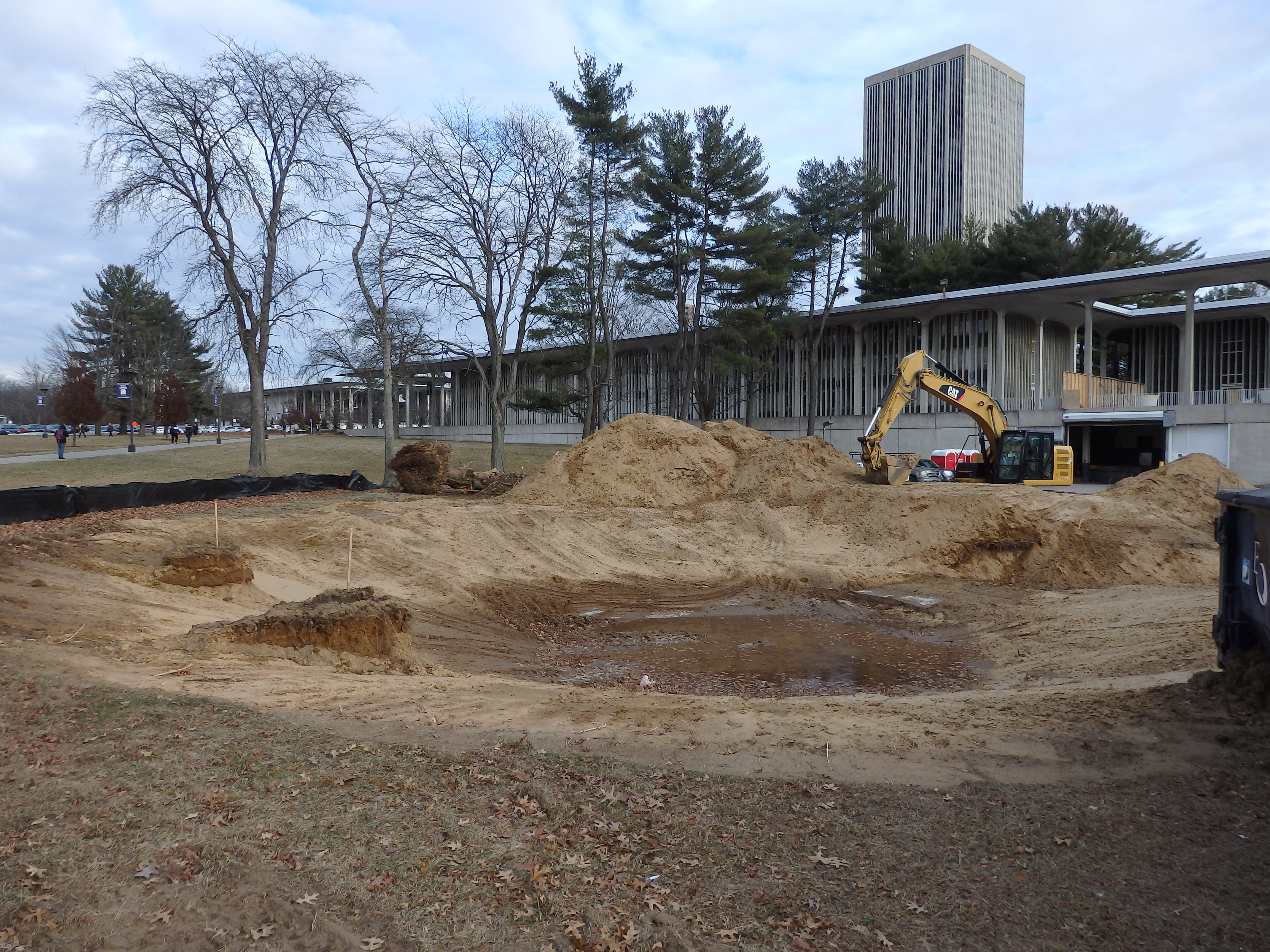 Infiltration pond in construction next to Dutch Quad, SUNY Albany