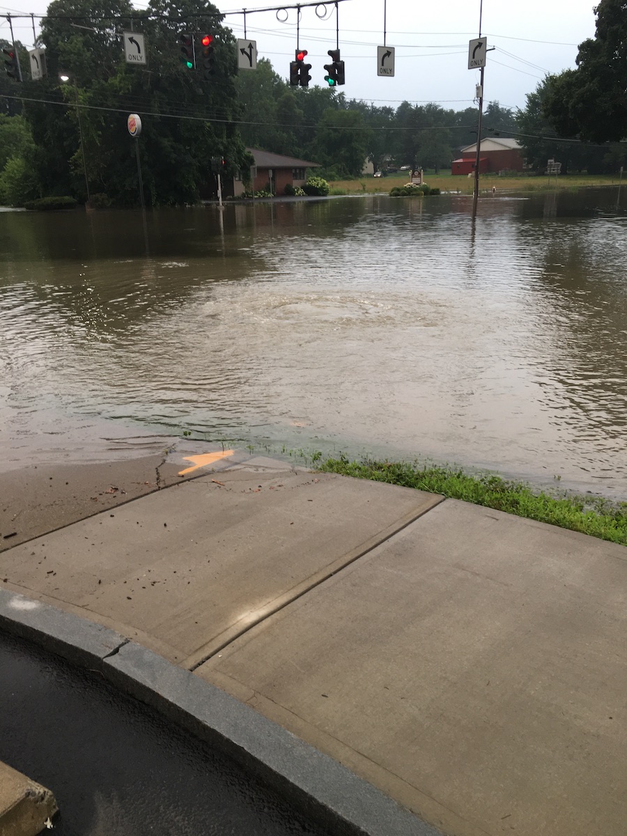 Western Avenue flooded and closed at the Fuller Road intersection,